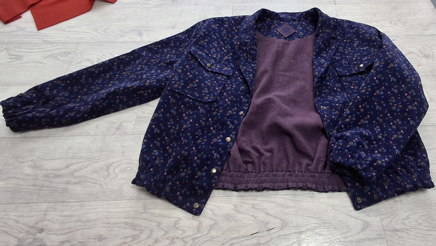 Образец сшит из вельвета (100% полиэстр), и подкладки (полиэстр 50%, вискоза 50%).