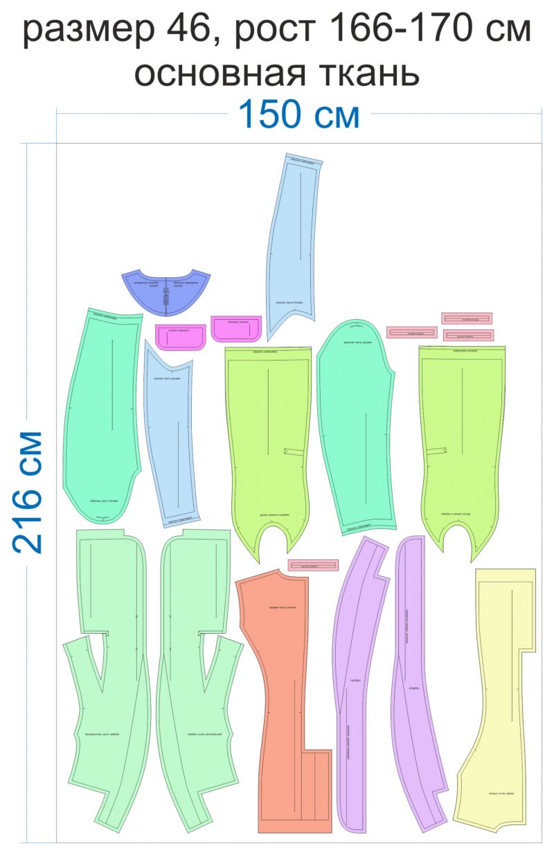 Образец раскладки на ткани (расчет выполнен для однотонной ткани без учета направления ворса):