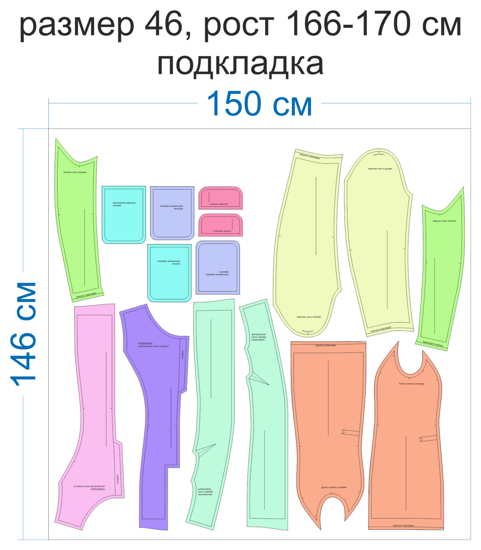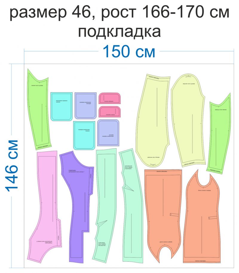 Внимание: расчет выполнен для однотонной ткани без рисунка, без учета направления ворса и возможной усадки! Усадка может достигать 15-20% от длины материала. Обязательно учитывайте это и берите с запасом.