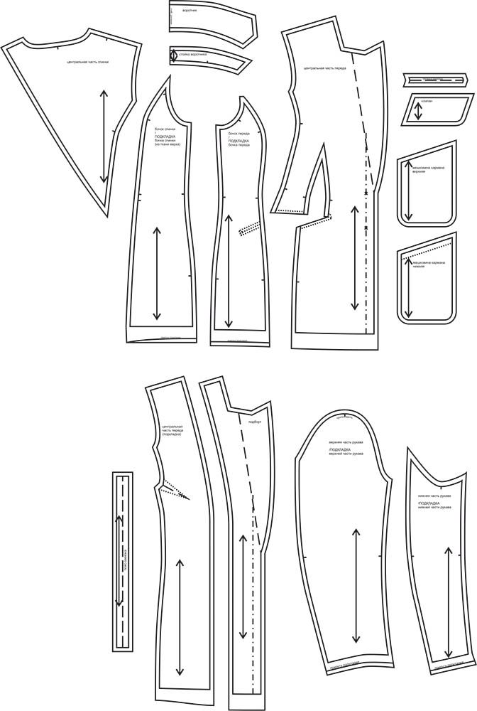Выкройки даны с припусками на швы. Они обозначены двойным контуром.