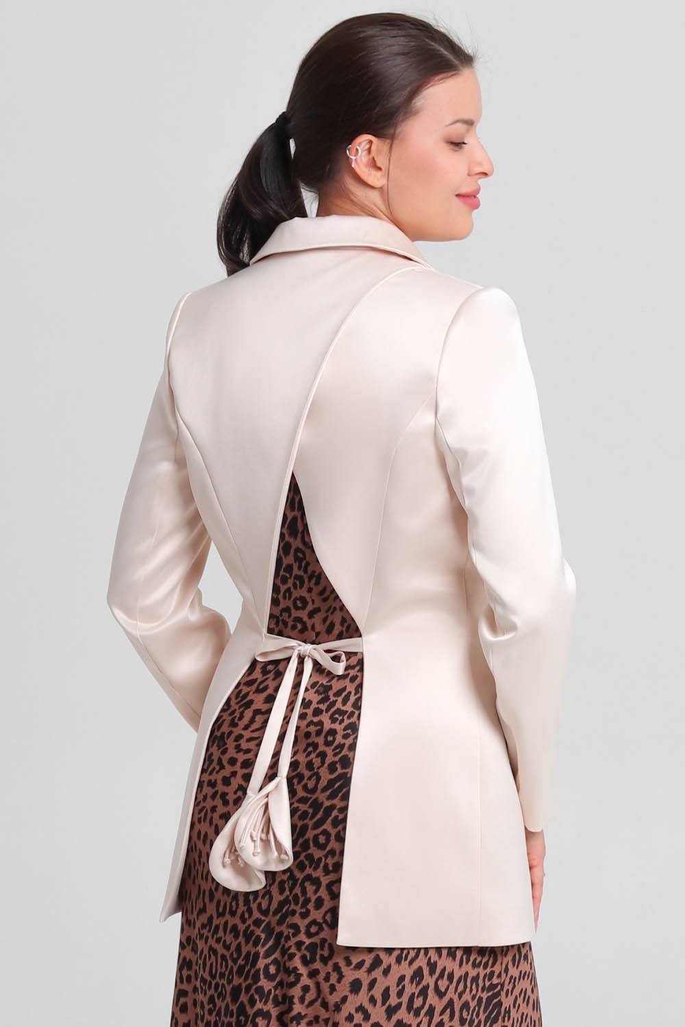 Длина жакета - ниже линии бёдер.
