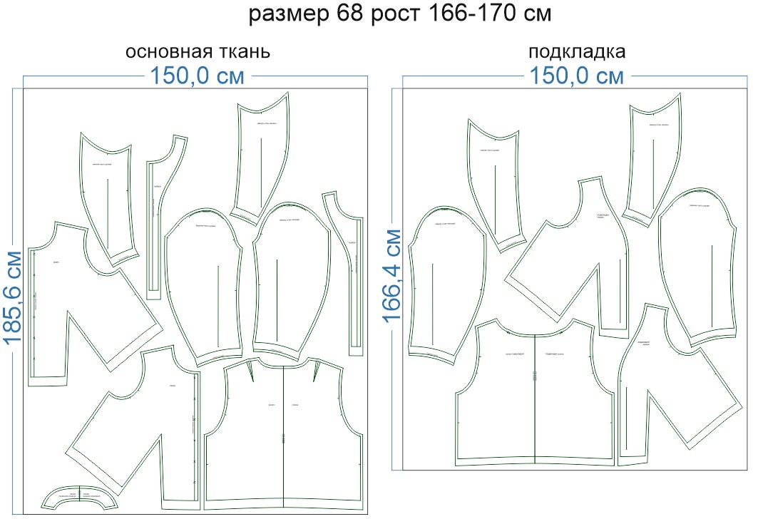 Внимание: расчет выполнен для однотонной ткани без рисунка, без учета направления ворса и возможной усадки! Усадка может достигать 15-20% от длины материала. Обязательно учитывайте это и берите с запасом.