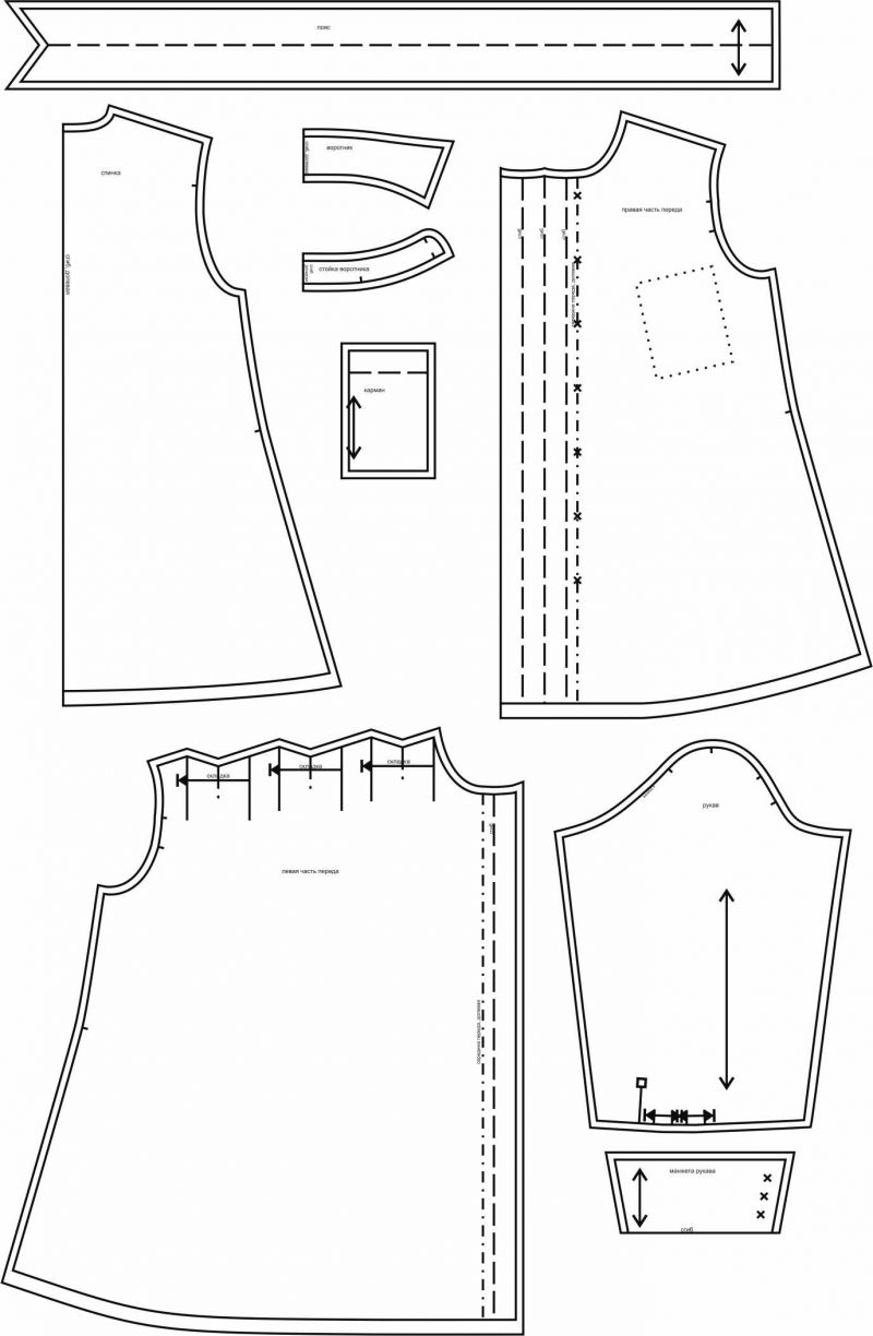 Выкройки даны с припусками на швы. Они обозначены двойным контуром.