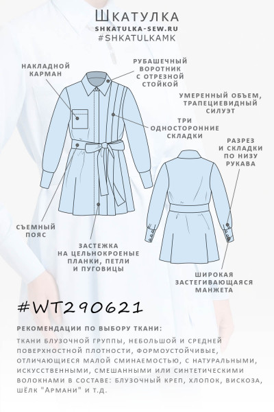 Выкройка женской блузки-рубашки WT290621