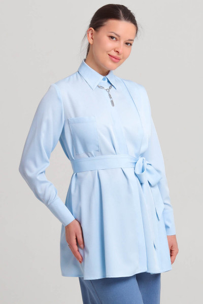 Длина блузки-рубашки - до середины бедра.