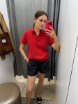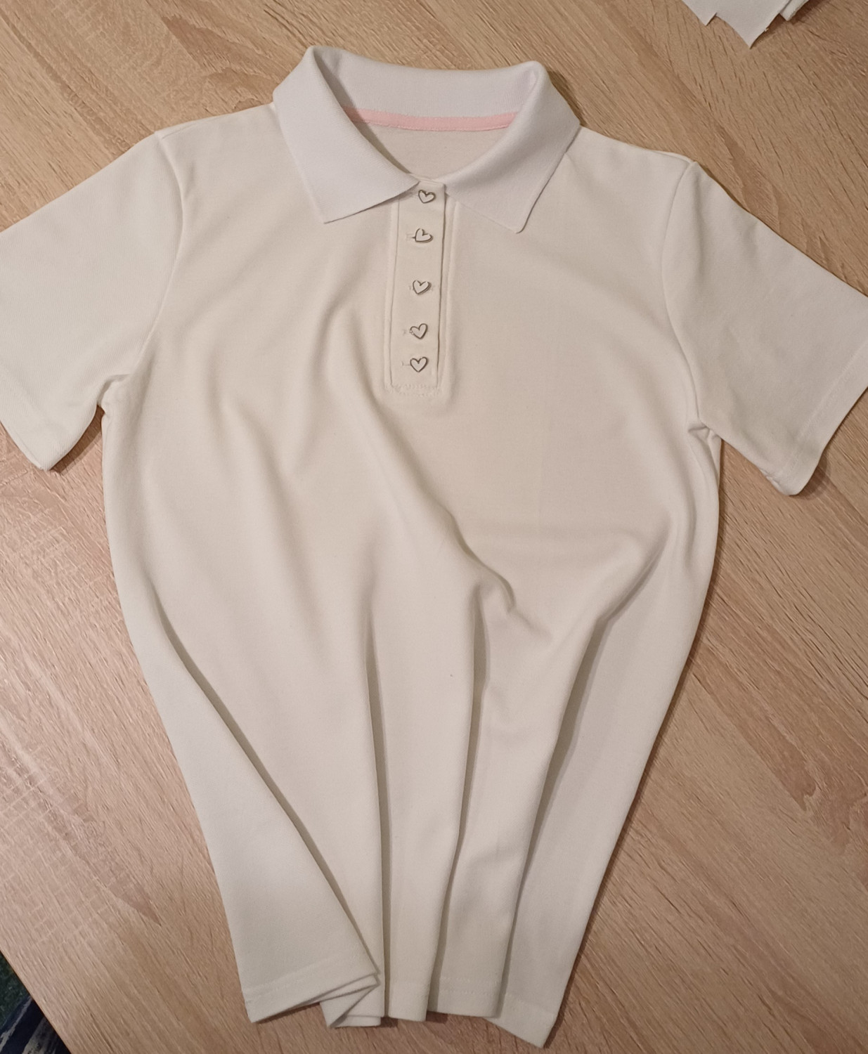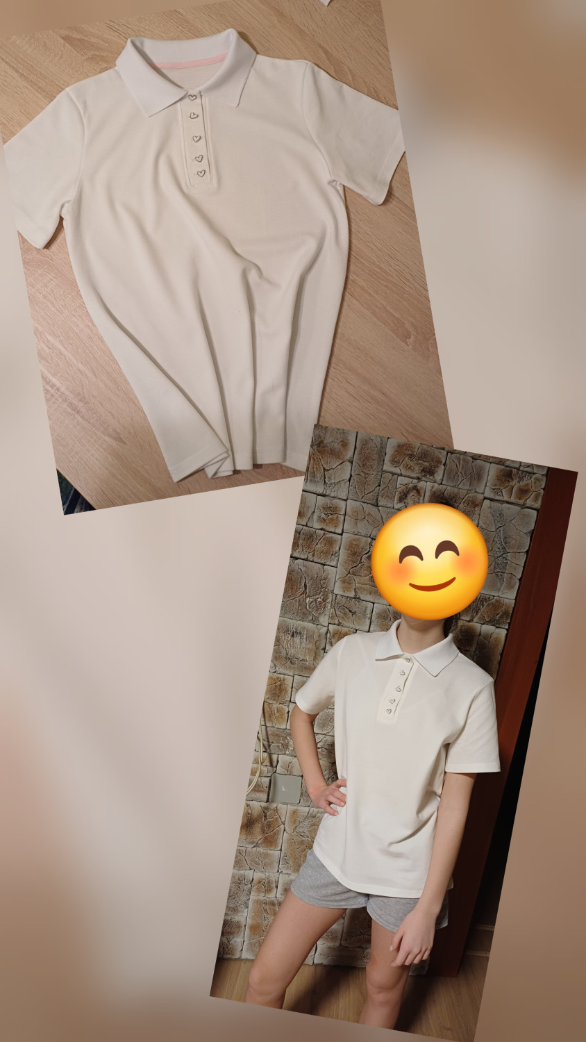4Выкройка женской футболки-поло умеренного объёма, прямого силуэта. Линия плеча на естественном месте. Полочка и спинка цельные. Застёжка поло, на планки и обмётанные петли и пуговицы. Воротник отложной. Рукав втачной, короткий. Длина футболки до середины бедра.