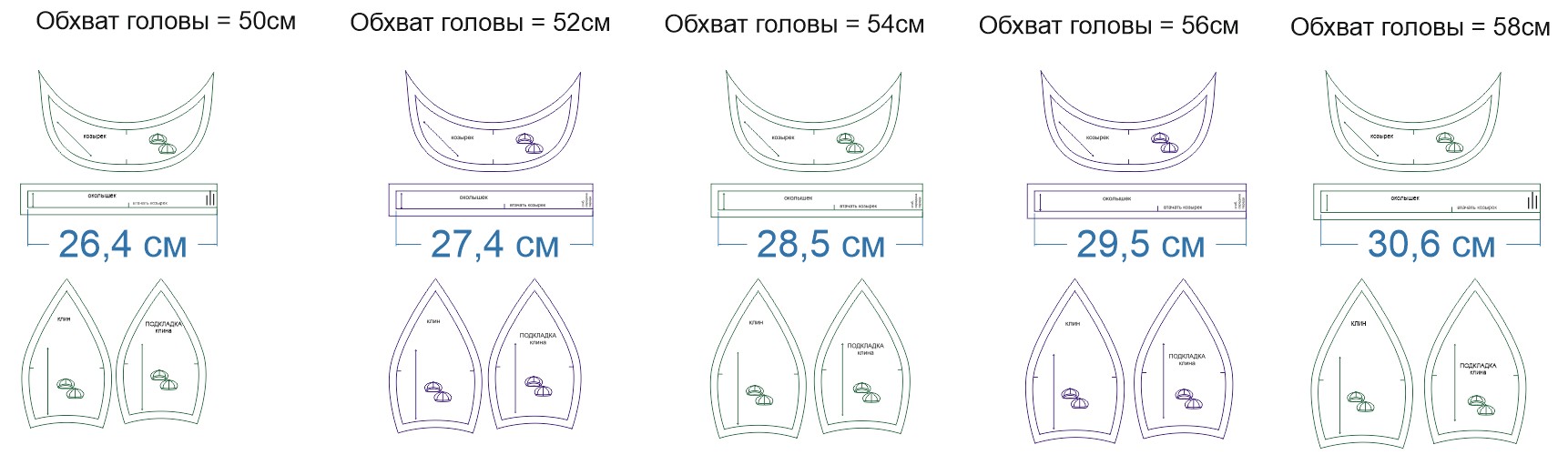 Обхват головы, см 50 52 54 56 58
