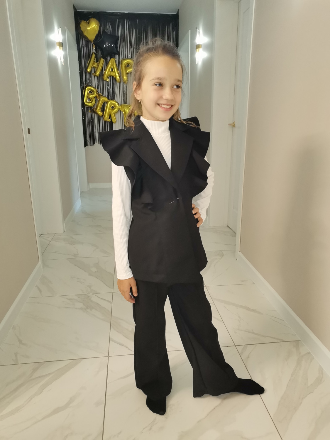 10Параметры модели: рост 122 см, обхват груди 61 см, обхват талии 58 см, обхват бедер 64 см. Выбрана выкройка 122 размера. Корректировки не выполнялись.