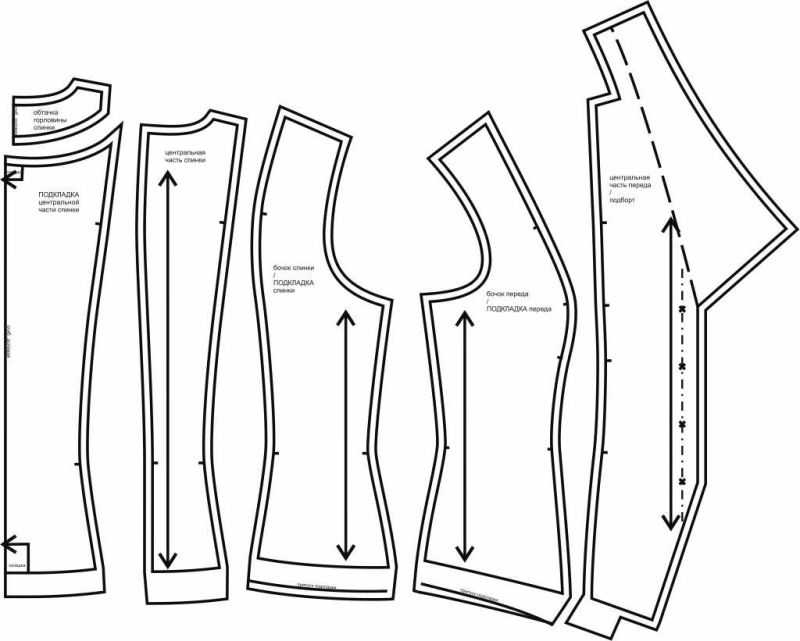 Выкройки даны с припусками на швы. Они обозначены двойным контуром.