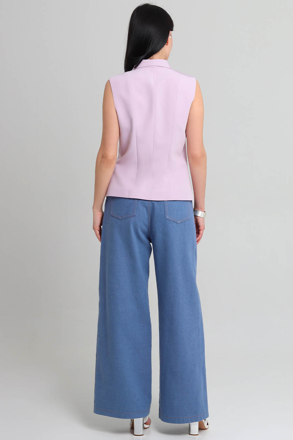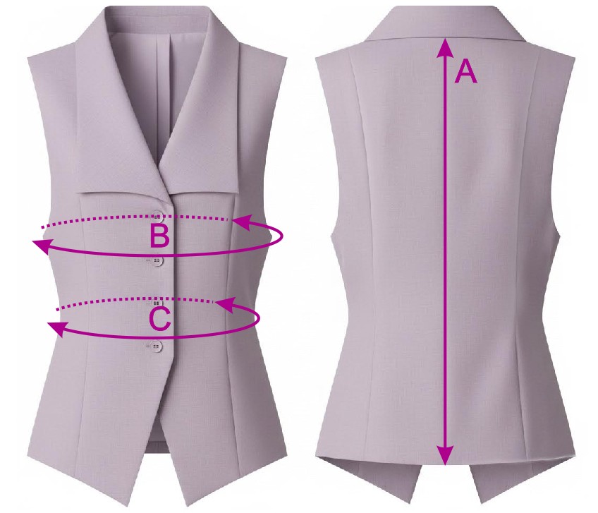 На уровне бокового шва длина жилета - до линии бёдер.