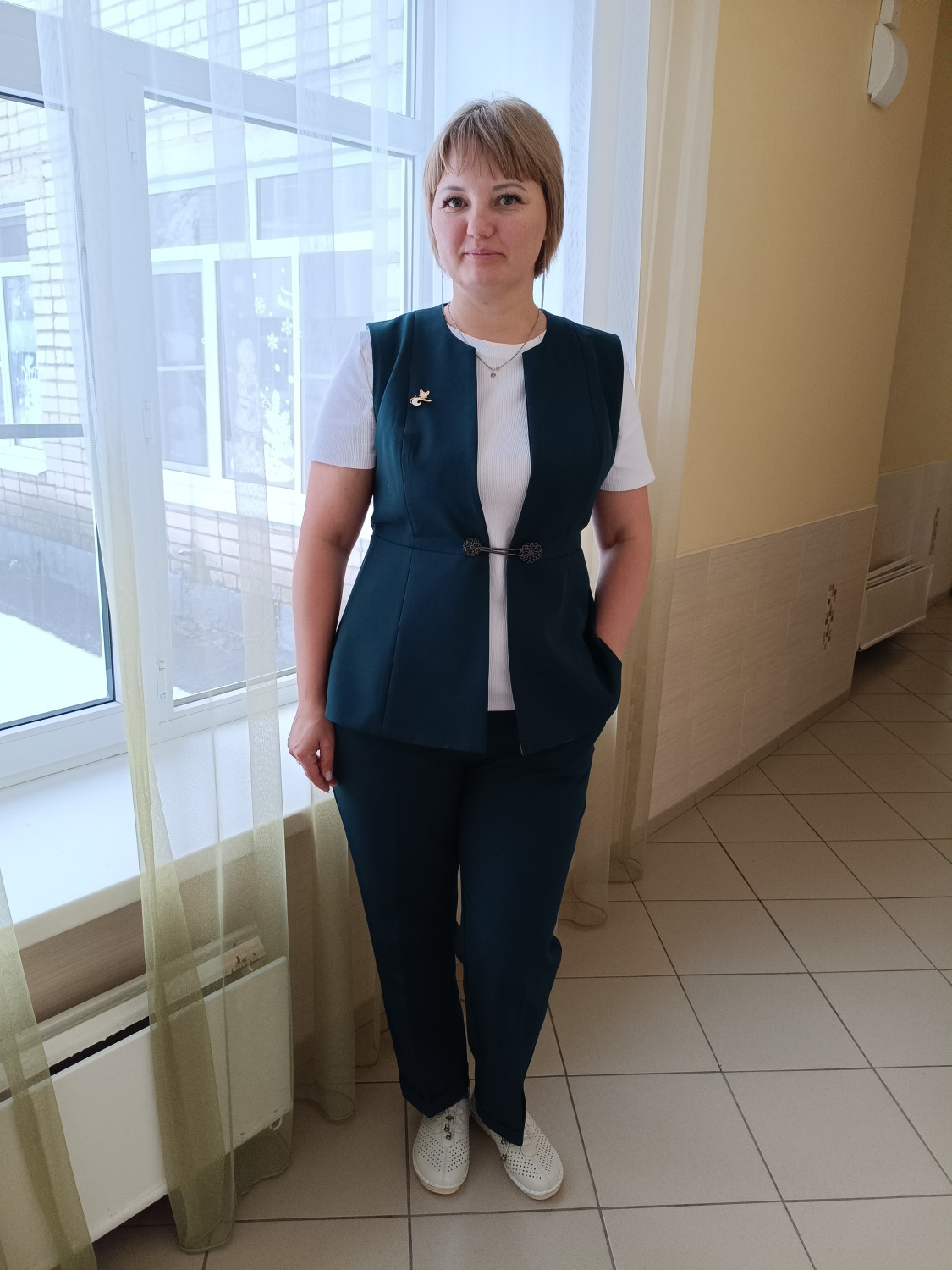 Длина жилета - до линии бёдер.