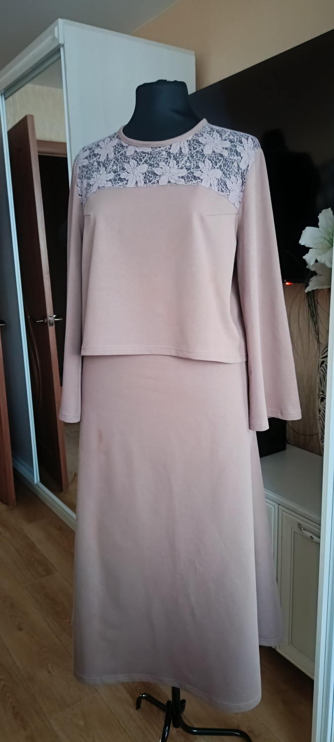 10Параметры модели: рост 170 см, обхват груди 84 см, обхват талии 63 см, обхват бедер 91 см. Выбрана выкройка 42 размера, рост 166-170 см. Выкройка скорректирована: юбка уменьшена в талии по мерке модели.