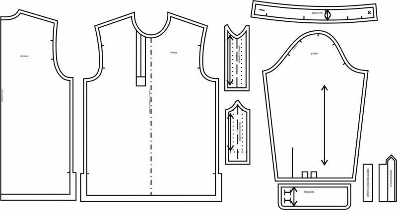 Выкройки даны с припусками на швы. Они обозначены двойным контуром.