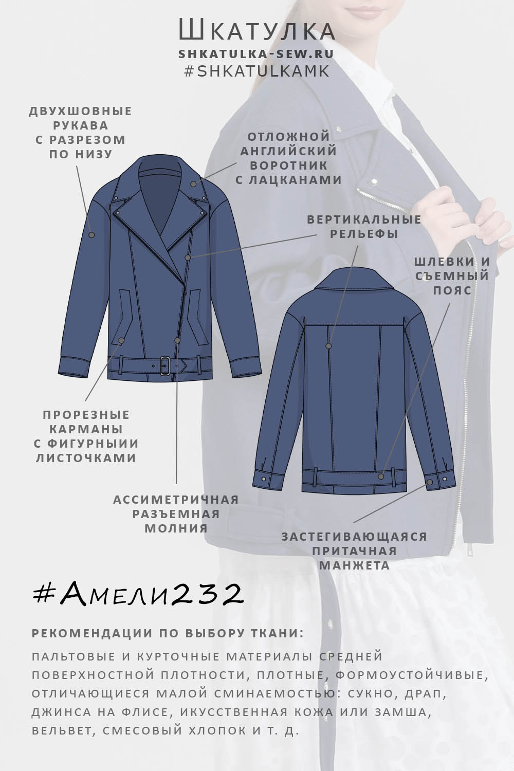Выкройка куртки-косухи Амели232
