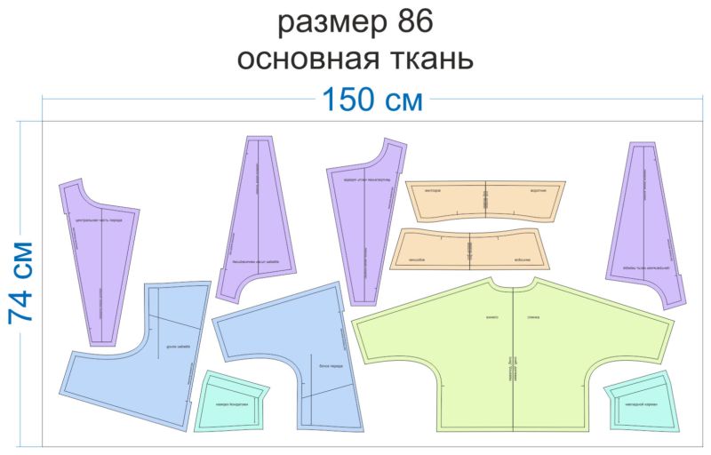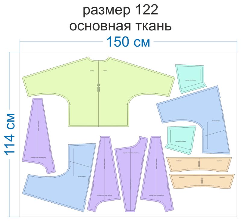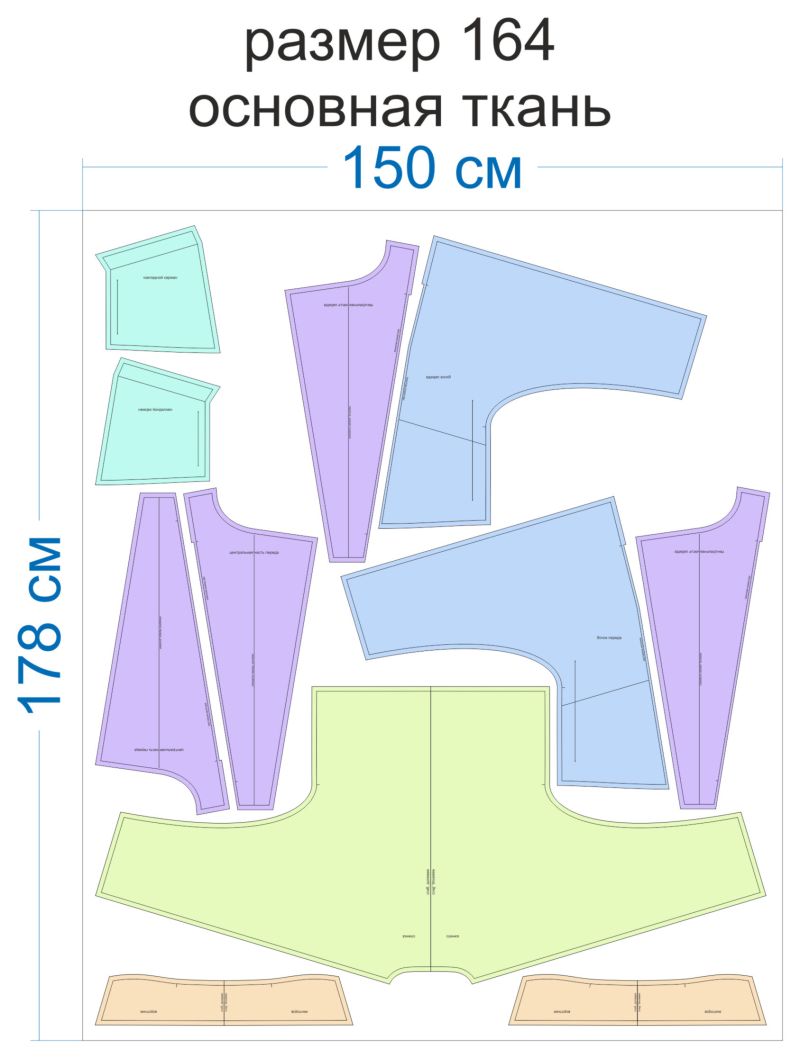 Внимание: расчет выполнен для однотонной ткани без рисунка, без учета направления ворса и возможной усадки! Усадка может достигать 15-20% от длины материала. Обязательно учитывайте это и берите с запасом.