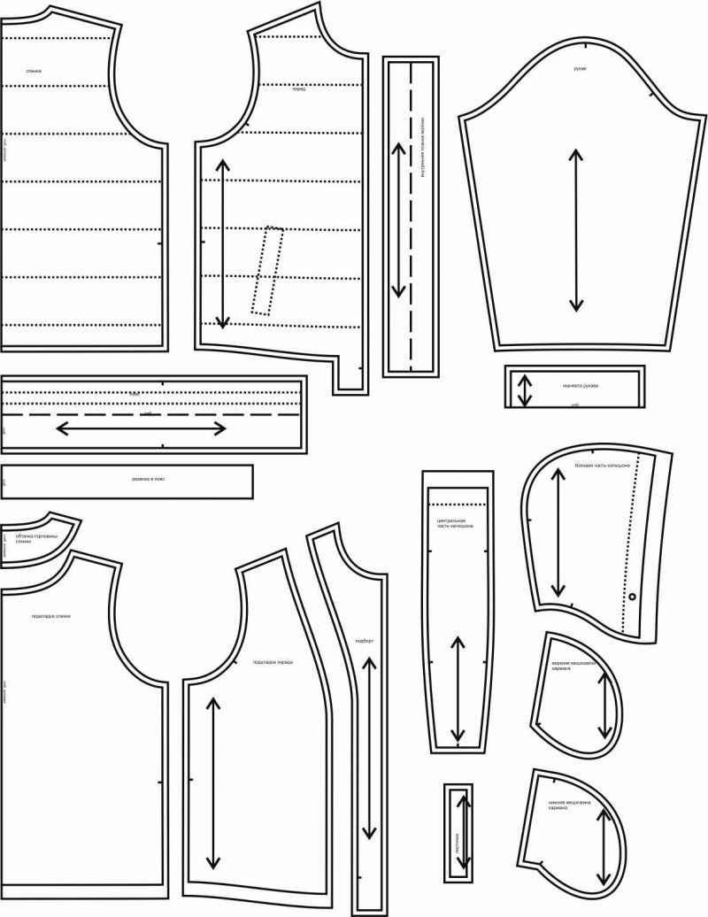 Выкройки даны с припусками на швы. Они обозначены двойным контуром.