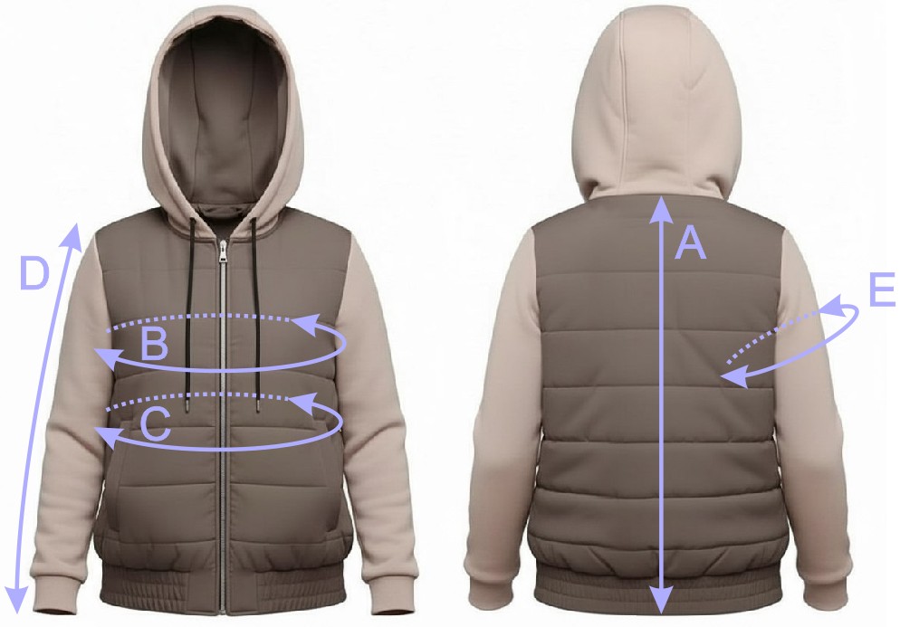 В качестве материала для капюшона и рукавов куртки можно использовать трикотажные полотна средней поверхностной плотности, формоустойчивые, отличающиеся малой сминаемостью, с натуральными, искусственными, синтетическими или смешанными волокнами в составе.