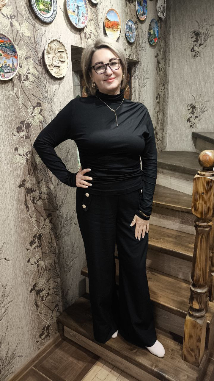 10Параметры модели: рост 173 см, обхват груди 92 см, обхват талии 72 см, обхват бедер 105 см. Выбрана выкройка 46 размера, рост 171-175 см. Корректировки не выполнялись.