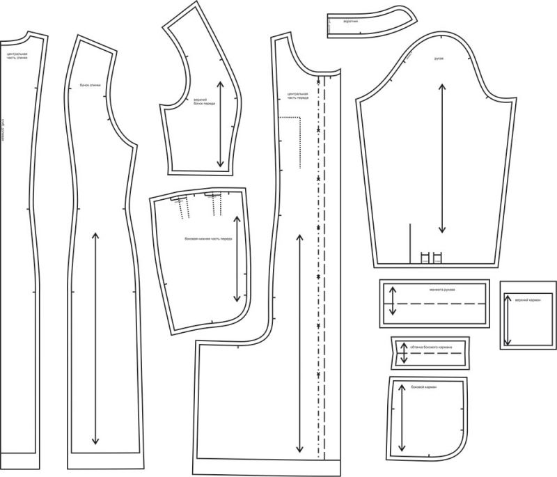 Выкройки даны с припусками на швы. Они обозначены двойным контуром.