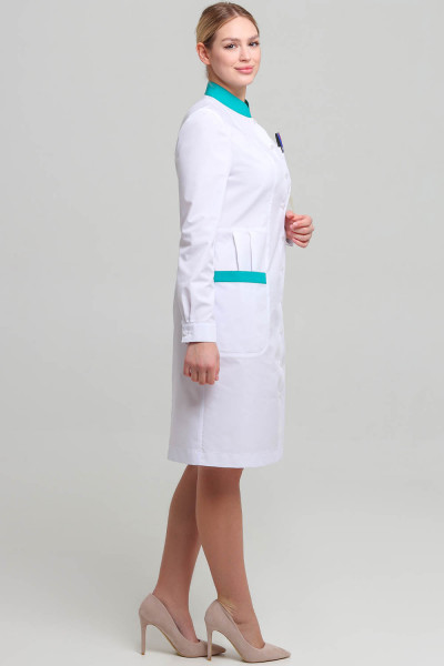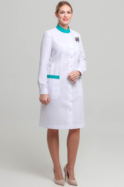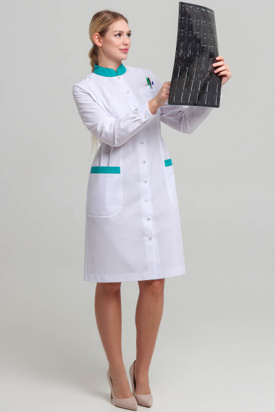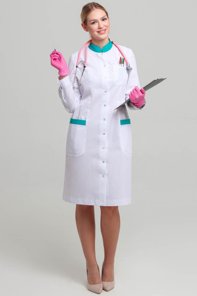Такой лаконично-строгий и вместе с тем сдержанно-элегантный женский медицинский халат позволит девочкам-студенткам выглядеть на лекциях стильно и комфортно. Сотрудницы больниц и поликлиник оценят женственный полуприлегающий силуэт, конструктивные вертикали кроя, оптически моделирующие силуэт и наличие карманов. Использование при пошиве тканей-компаньонов в отделке халата смягчают и облагораживают строгий официоз медицинской униформы. Наличие застежки позволяет надевать халат поверх повседневной одежды. Не менее комфортен он и как самостоятельный предмет спецодежды медицинского работника.
