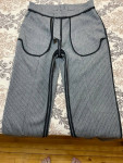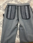 Для пошива брюк подойдут костюмные ткани средней поверхностной плотности, формоустойчивые, отличающиеся малой сминаемостью, по волокнистому составу с содержанием натуральных, смешанных, искусственных или синтетических волокон.