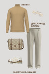 4Выкройка мужских классических брюк полуприлегающего силуэта, умеренного объёма. Передние половинки брюк — с боковыми карманами с подрезным бочком, с заутюженными стрелками и защипами по талии, на подкладке. Задние половинки с заутюженными стрелками, с прорезными карманами в рамку. Пояс брюк — притачной, со шлёвками. Застёжка — классический гульфик и обмётанная петля и пуговица на поясе.
