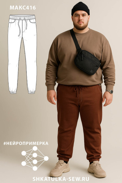10Параметры модели: рост 178 см, обхват груди 108 см , обхват талии 93 см, обхват бедер 108 см . Выбрана выкройка 52 размера, рост 178-183 см. Корректировки не выполнялись.