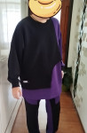 Выкройка мужского комбинированного длинного свитшота с очень большой сводобой, со спущенным плечом, асимметричным кроем верхней детали и притачными манжетами на рукавах.
