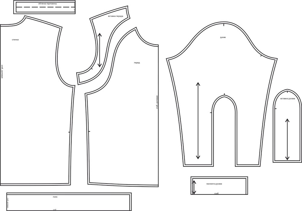 Выкройки даны с припусками на швы. Они обозначены двойным контуром.