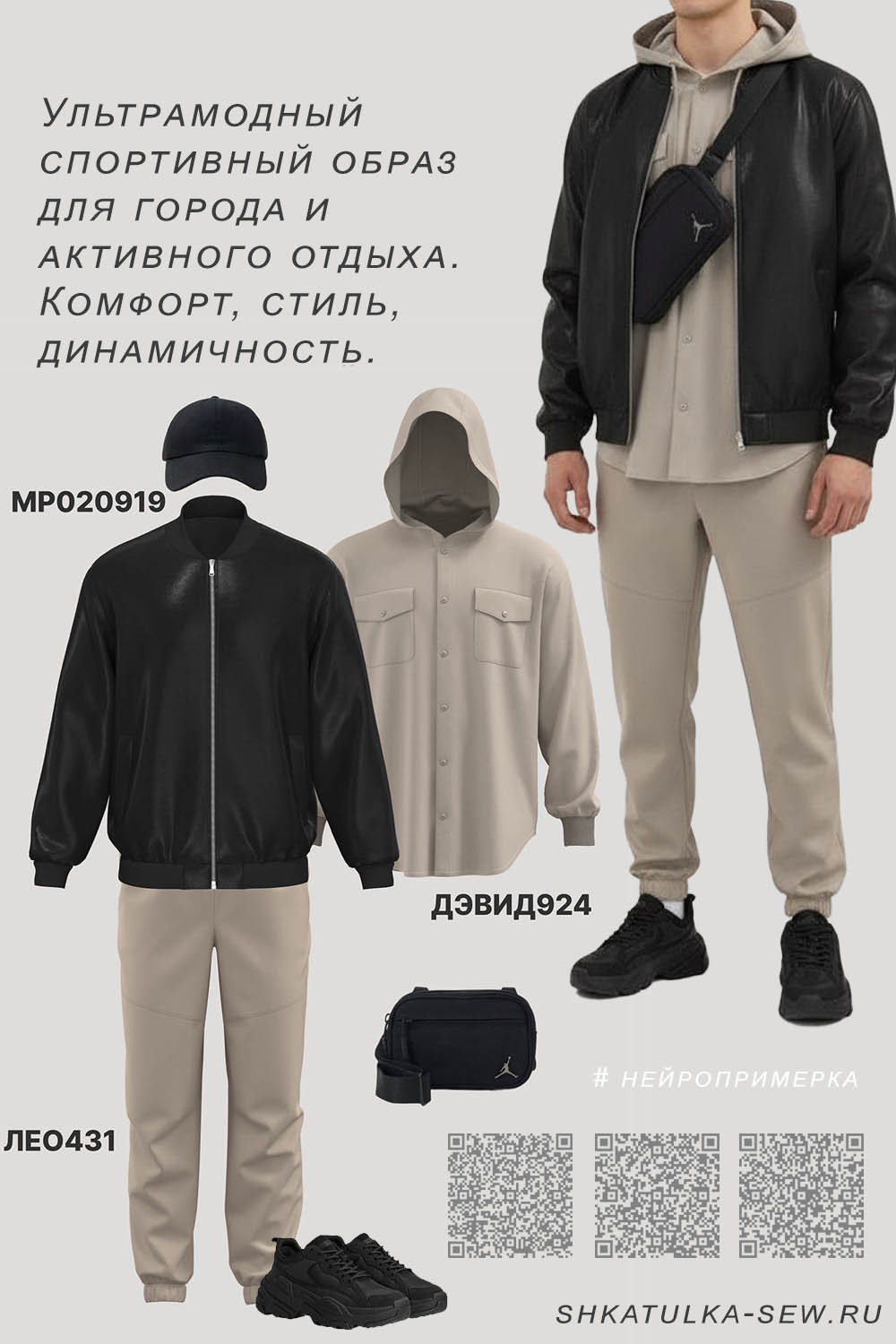 Выкройка мужской куртки-бомбер с удлиненным плечом MP020919