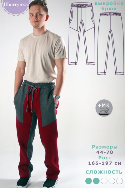 Для ознакомления доступны следующие размеры выкройки бесплатно: 46 (рост 184-190 см), 56 (рост 165-170 см), 66 (рост 191-197 см). Чтобы их получить, добавьте эти размеры в корзину. После оформления заказа они будут доступны в Вашем личном кабинете бесплатно.