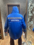 Горловина куртки оформлена воротником-стойкой и съёмным двухшовным капюшоном, пристёгивающимся на молнию по горловине спинки и на липучки, скрытые под планками на передней части воротника. Застёжка центральная бортовая на разъёмную молнию и ветрозащитную планку с кнопками.