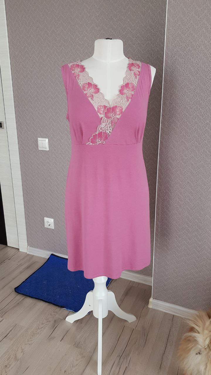 Ночная сорочка – это, прежде всего, максимальный комфорт. А в такой сорочке вы будете еще и невероятно привлекательны. Нежное кружево, обрамляющее зону декольте, подчеркнет романтичную женственность. Слегка приталенный силуэт - эстетику и грацию силуэта. Такая модель идеально подойдет и обладательницам пышного бюста, и астеничным девочкам-подросткам, и кормящим мамочкам.