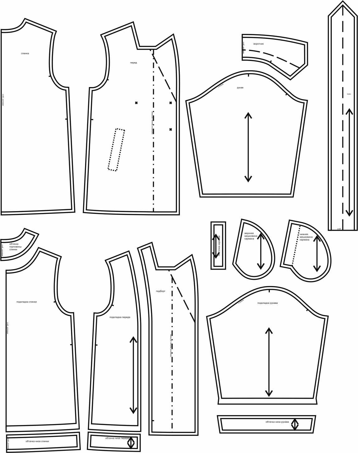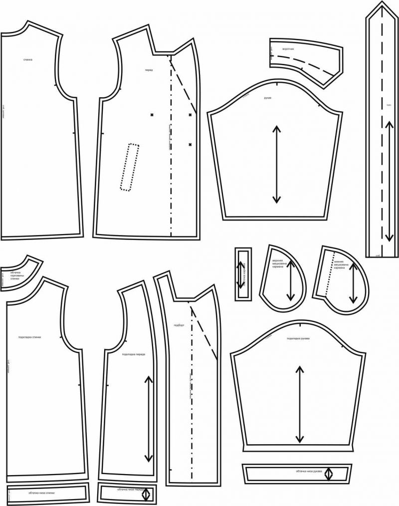 Выкройки даны с припусками на швы. Они обозначены двойным контуром.