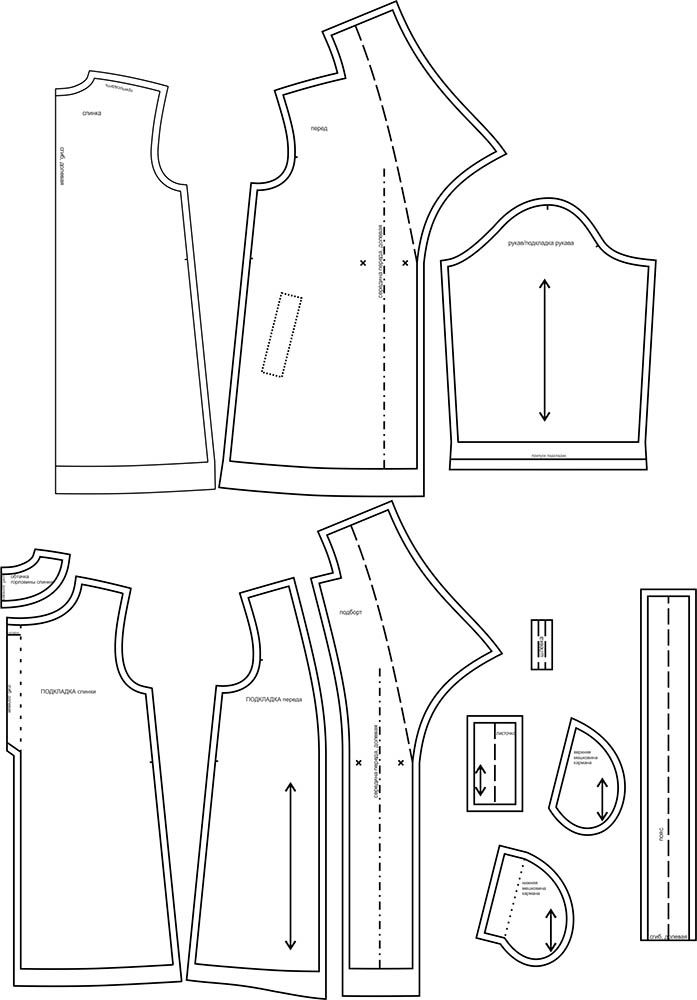 Выкройки даны с припусками на швы. Они обозначены двойным контуром.