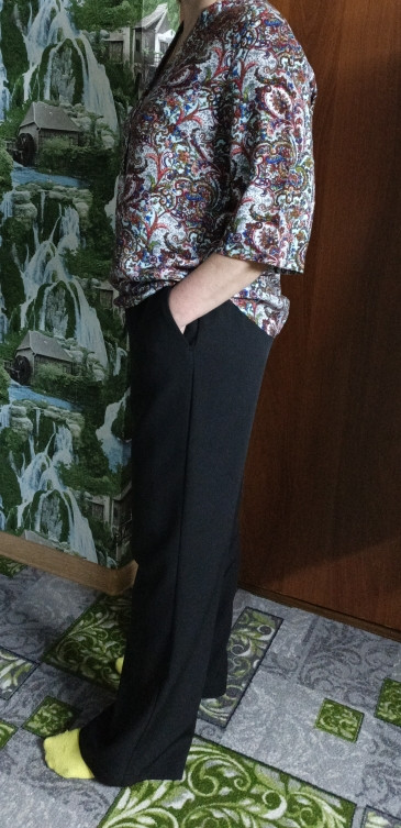 10Параметры модели: рост 168 см, обхват груди 88 см, обхват талии 65 см, обхват бедер 95 см. Выбрана выкройка 44 размера, рост 166-170 см. Корректировки выкройки не выполнялись.