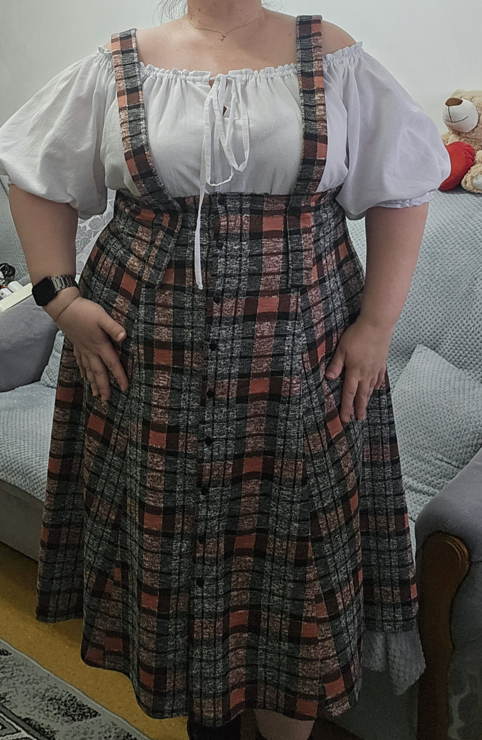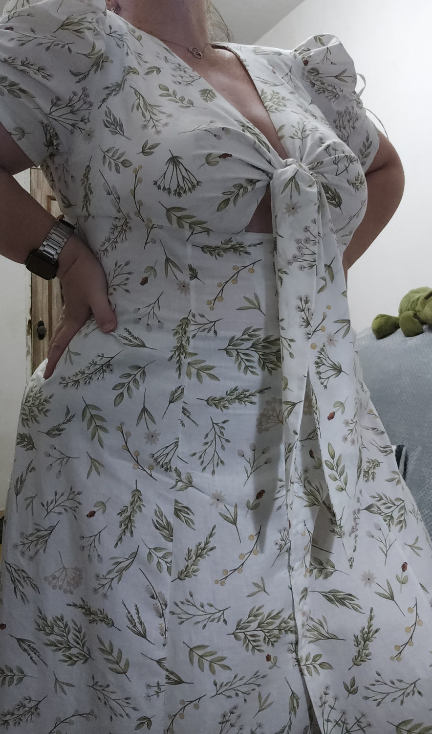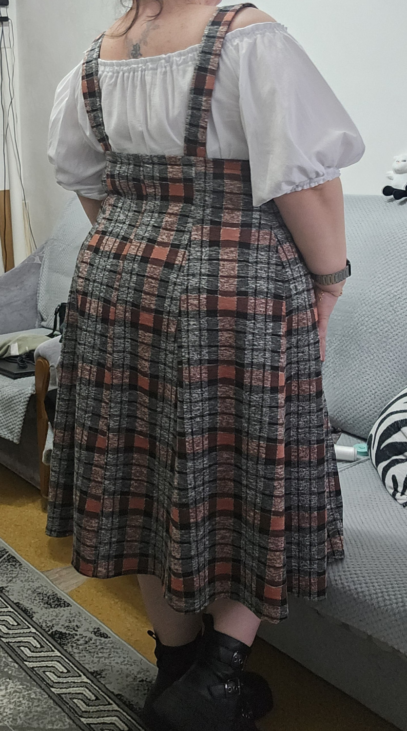 10Параметры модели: рост 173 см, обхват груди 90 см, обхват талии 72 см, обхват бедер 102 см. Выбрана выкройка 46 размера, рост 171-175 см. Корректировки не выполнялись.