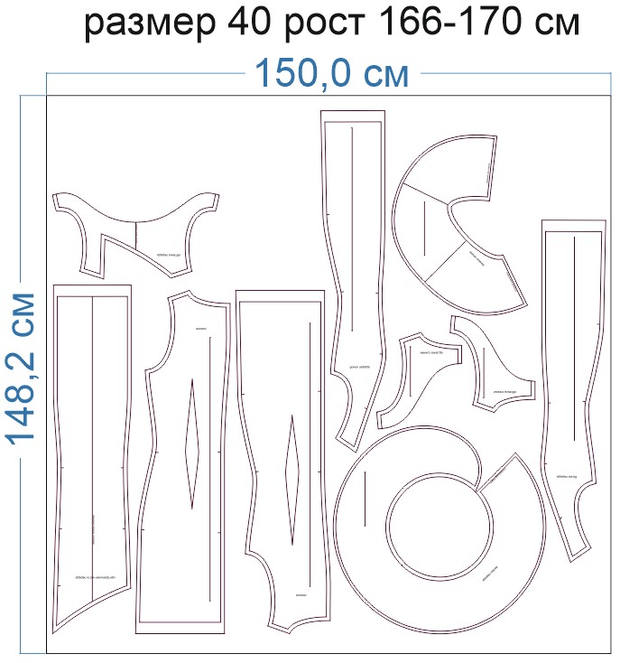 Образцы раскладки на ткани для выборочных размеров (расчет выполнен для однотонной ткани без учета направления ворса):