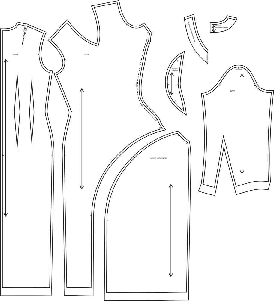 Выкройки даны с припусками на швы. Они обозначены двойным контуром.