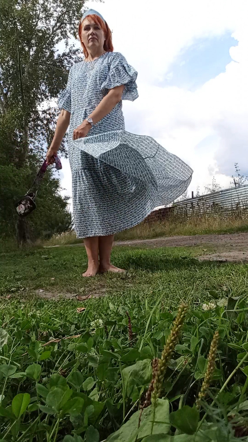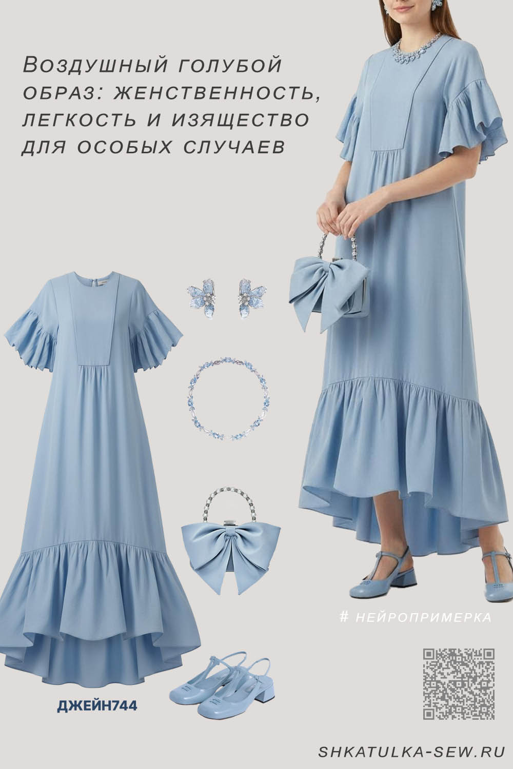 4Платье А-силуэта с перепадом длины и широкой оборкой по низу. Длинное. Спереди - кокетка и сборка под ней. На спинке плечевые вытачки и средний шов с застежкой-пуговицей.