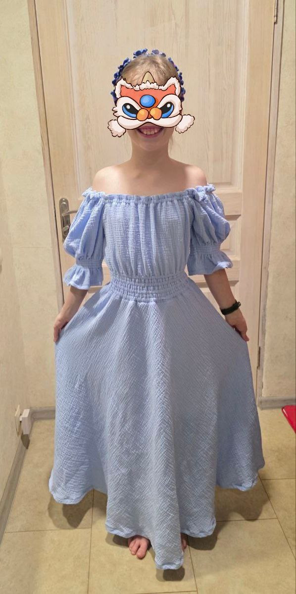 Длина платья — 7/8. В качестве дополнения к платью предусмотрен съёмный завязывающийся пояс. Платье подойдет в том числе беременным.