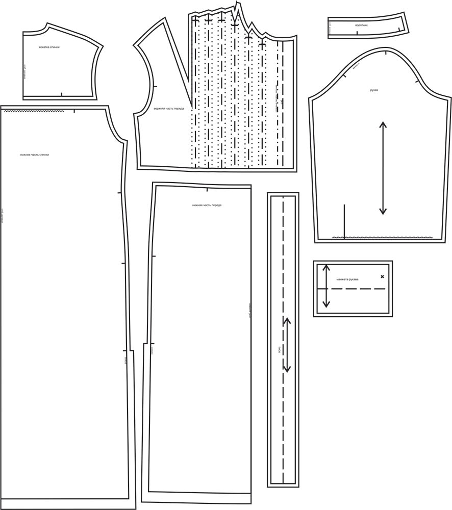 Выкройки даны с припусками на швы. Они обозначены двойным контуром.