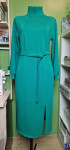 Идеальное платье из трикотажа должно быть простым, комфортным и непременно стильным. Это платье именно из этой серии. Максимально закрытая зона декольте, длинный рукав, длина миди…, но при этом эффектный разрез, соблазнительно приоткрывающий изящную ножку. Чистота вертикальных линий кроя визуально вытягивает и стройнит. Пояс подчеркивает талию, но ниспадает дополнительной вертикалью. Трикотаж любит харизматичных соседей, поэтому подберите к нему соответствующие аксессуары и образ перестанет быть просто уютно-комфортным, а станет стилистически выдержанным и остро-модным.