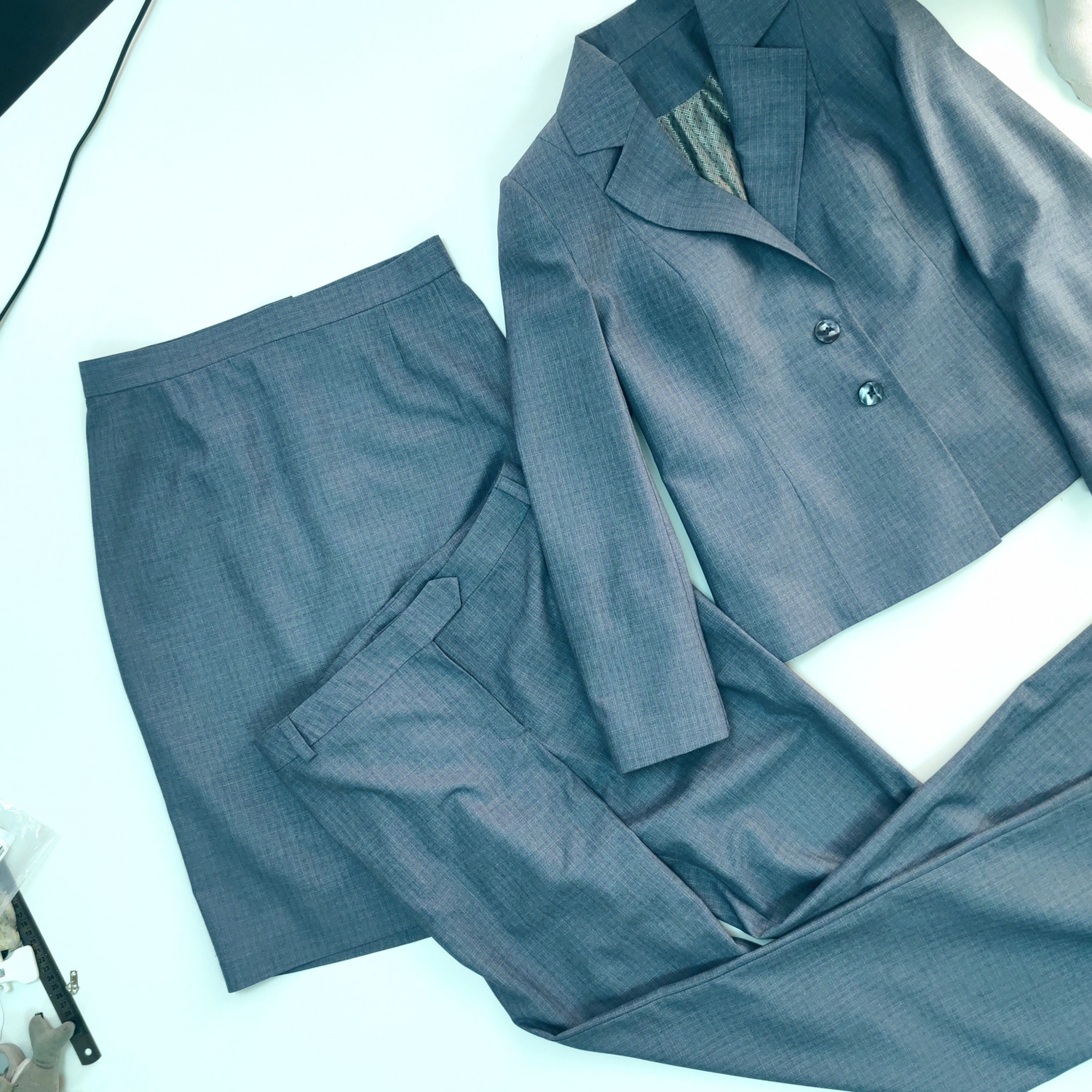 Пример: костюмные ткани, плотные трикотажные полотна, шамбре, габардин, замша, жаккард, твид, вельвет, тафта, джинса, кашемир.
