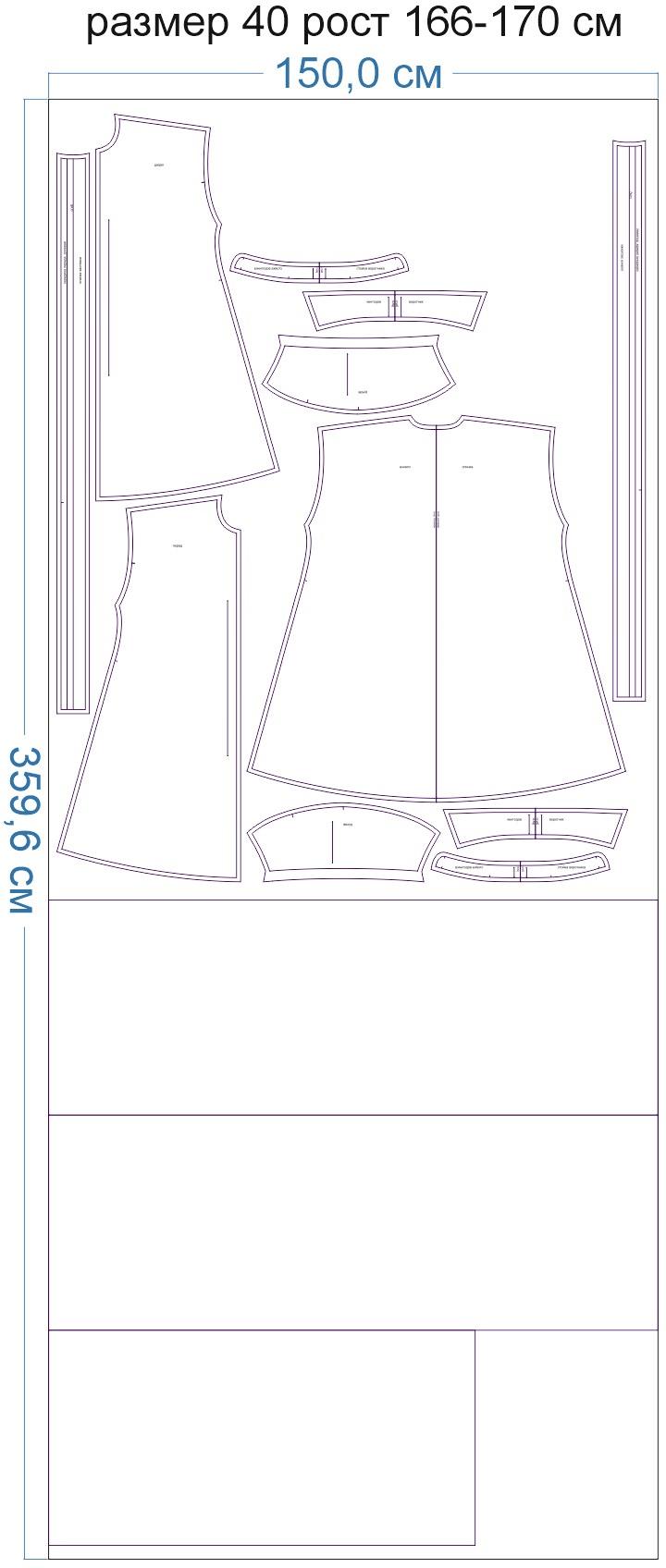Внимание: расчет выполнен для однотонной ткани без рисунка, без учета направления ворса и возможной усадки! Усадка может достигать 15-20% от длины материала. Обязательно учитывайте это и берите с запасом.
