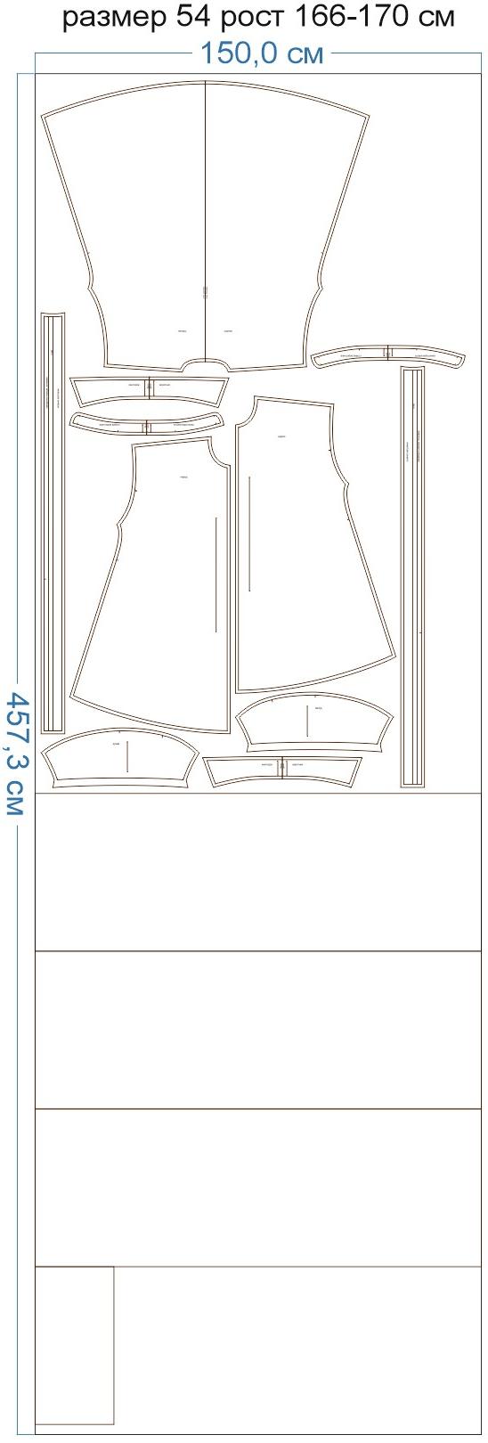 Образцы раскладки на ткани для выборочных размеров (расчет выполнен для однотонной ткани без учета направления ворса):