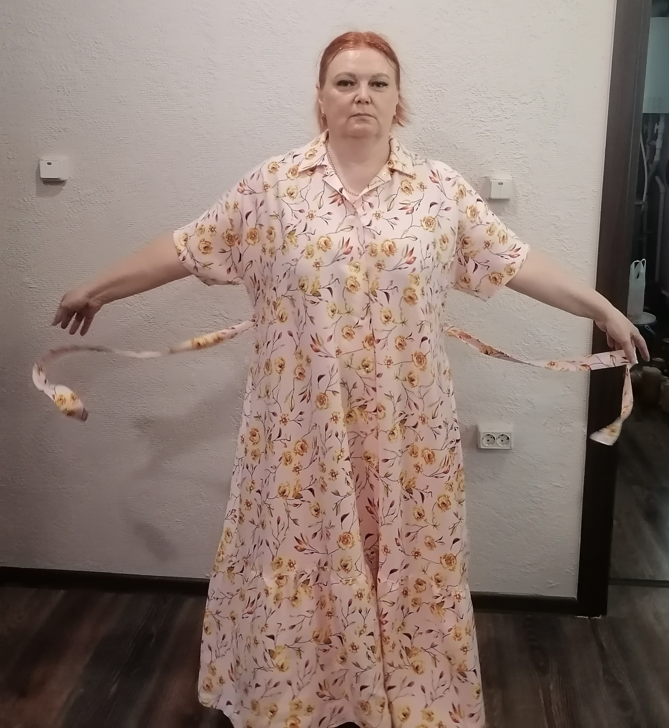 Длина платья - до щиколотки.
