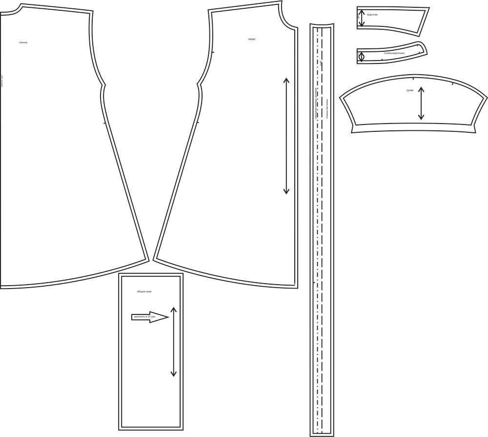 Выкройки даны с припусками на швы. Они обозначены двойным контуром.
