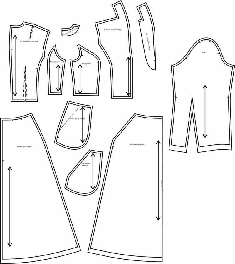 10Параметры модели: рост 173 см, обхват груди 92 см, обхват талии 72 см, обхват бедер 104 см. Выбрана выкройка 46 размера, рост 171-175 см. Выкройка увеличена в бедрах по мерке модели. Скорректированы рельефы под объему груди модели (увеличен раствор).