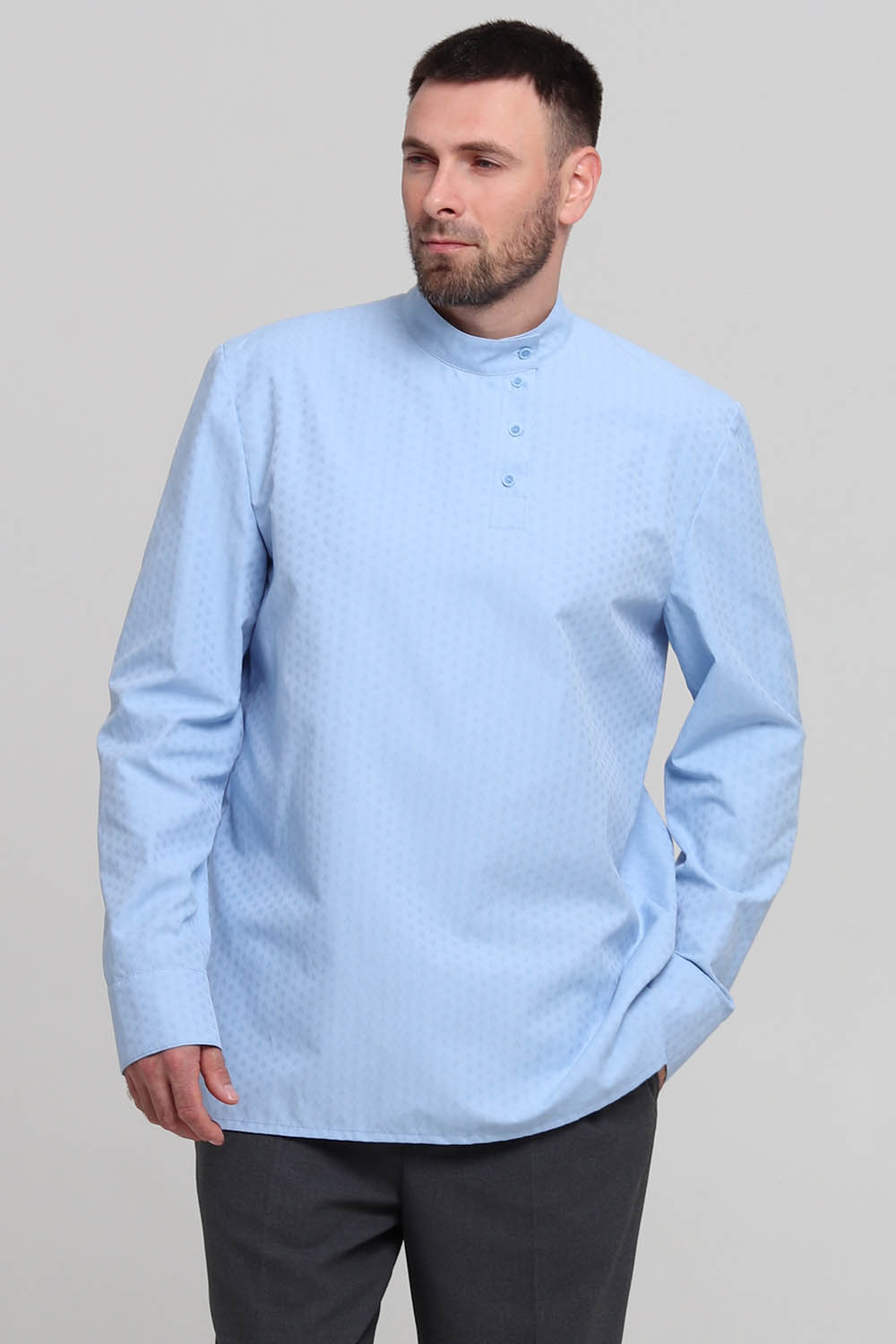 4Выкройка мужской косоворотки среднего объёма, прямого силуэта. Перед и спинка - цельные, без формообразующих конструктивных элементов. Горловина оформлена воротником-стойкой.